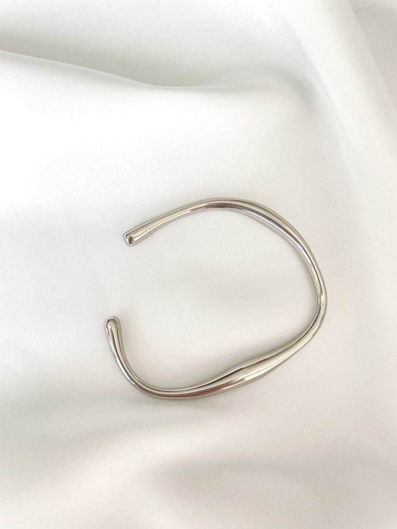 Ασημί βραχιόλι cuff από ατσάλι. Συνδυάζεται ιδανικά με μονόχρωμα looks για μια διακριτική statement λεπτομέρεια.