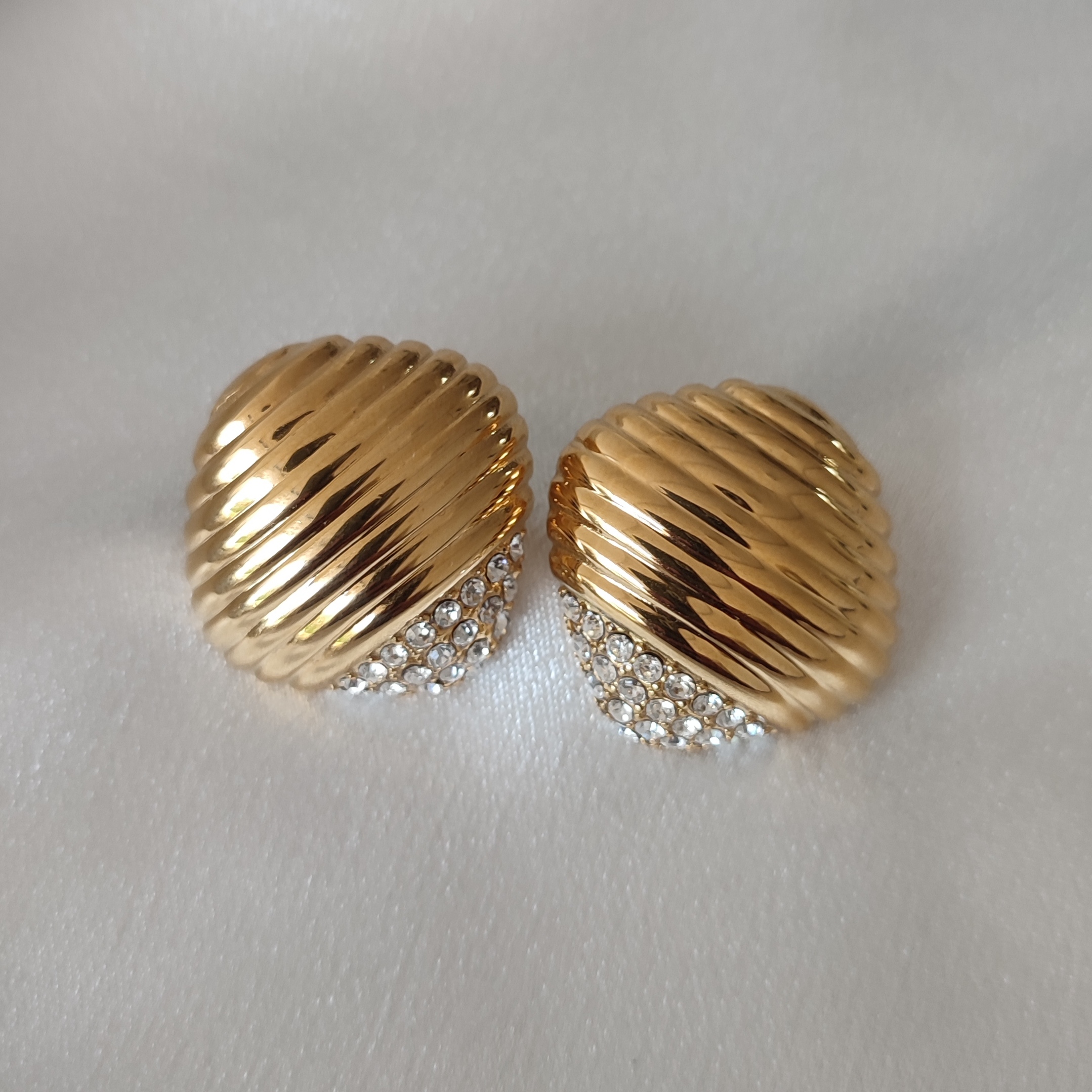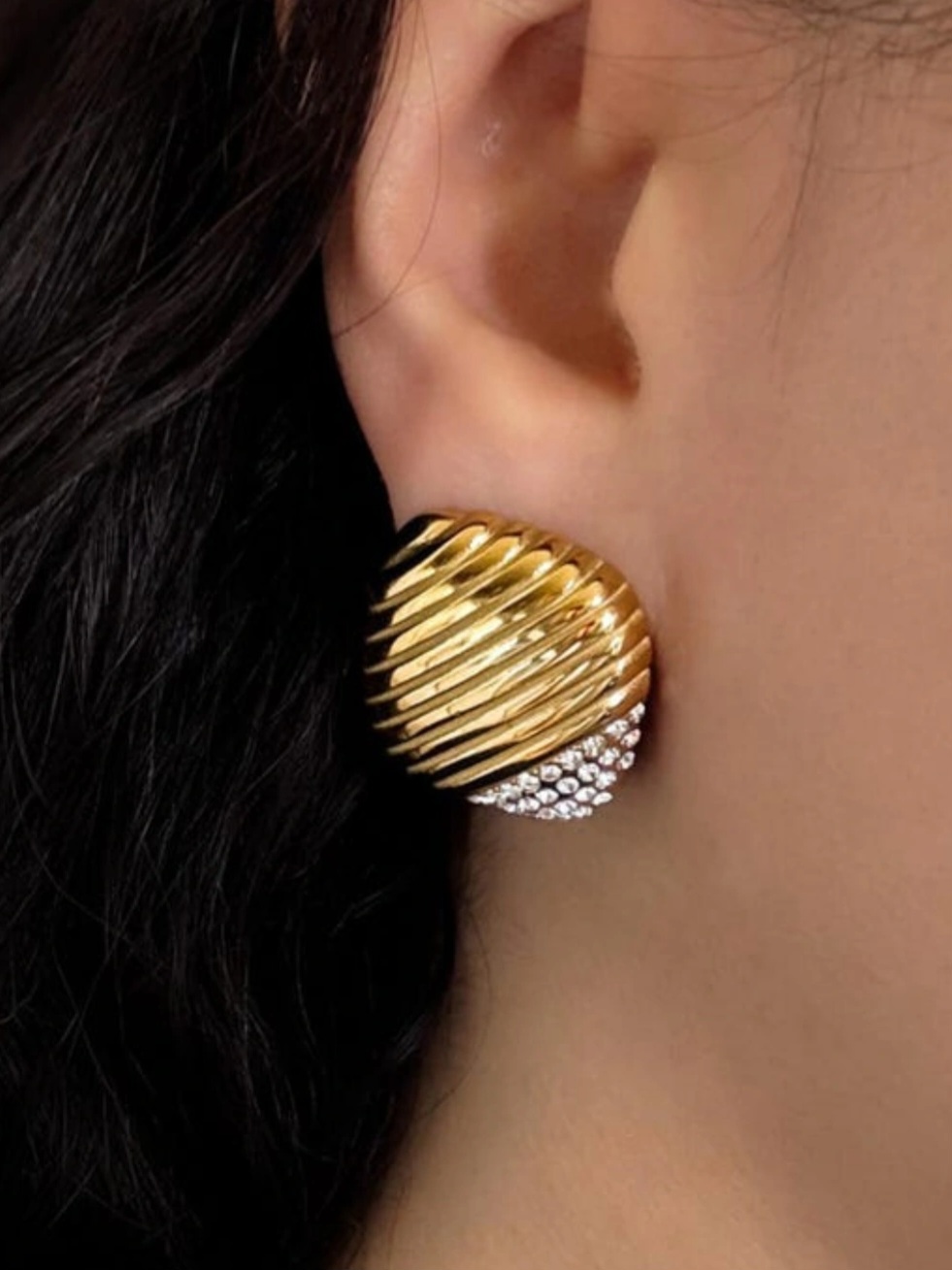 Σκουλαρίκια από ατσάλι με χρυσή λάμψη και ανάγλυφο σχέδιο. Ιδανικά για να δώσουν διακριτική κομψότητα σε ένα βραδινό ή καθημερινό outfit.