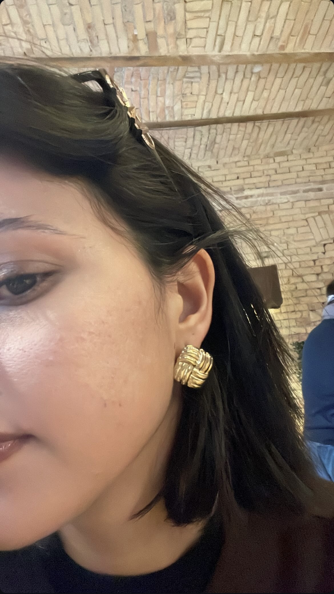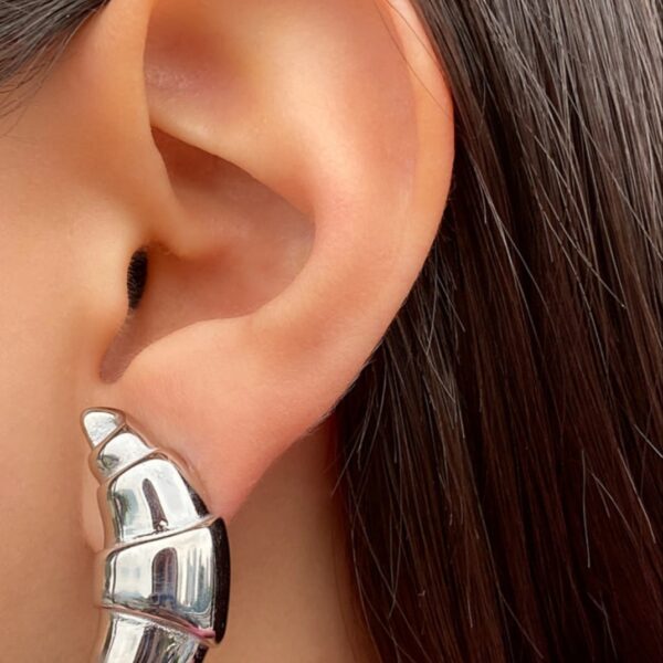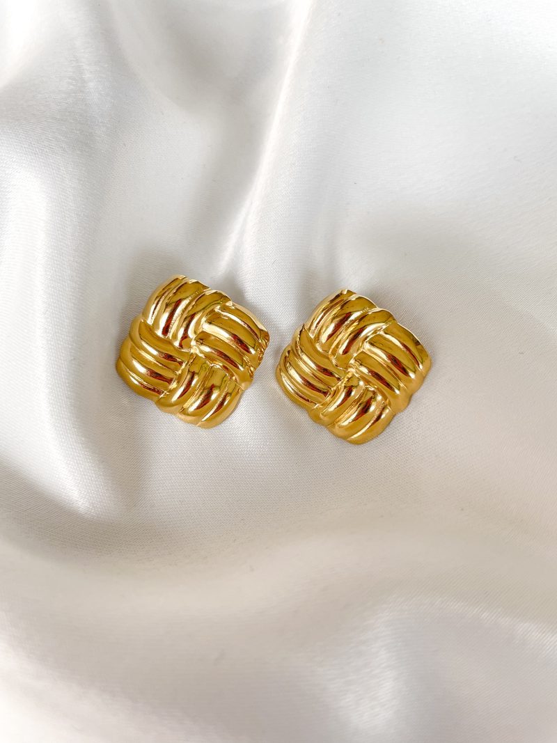 Σκουλαρίκια με πλεκτή υφή και γεωμετρικό σχήμα. Ταιριάζουν ιδανικά με μαλλιά πιασμένα και κλασικό πουκάμισο.