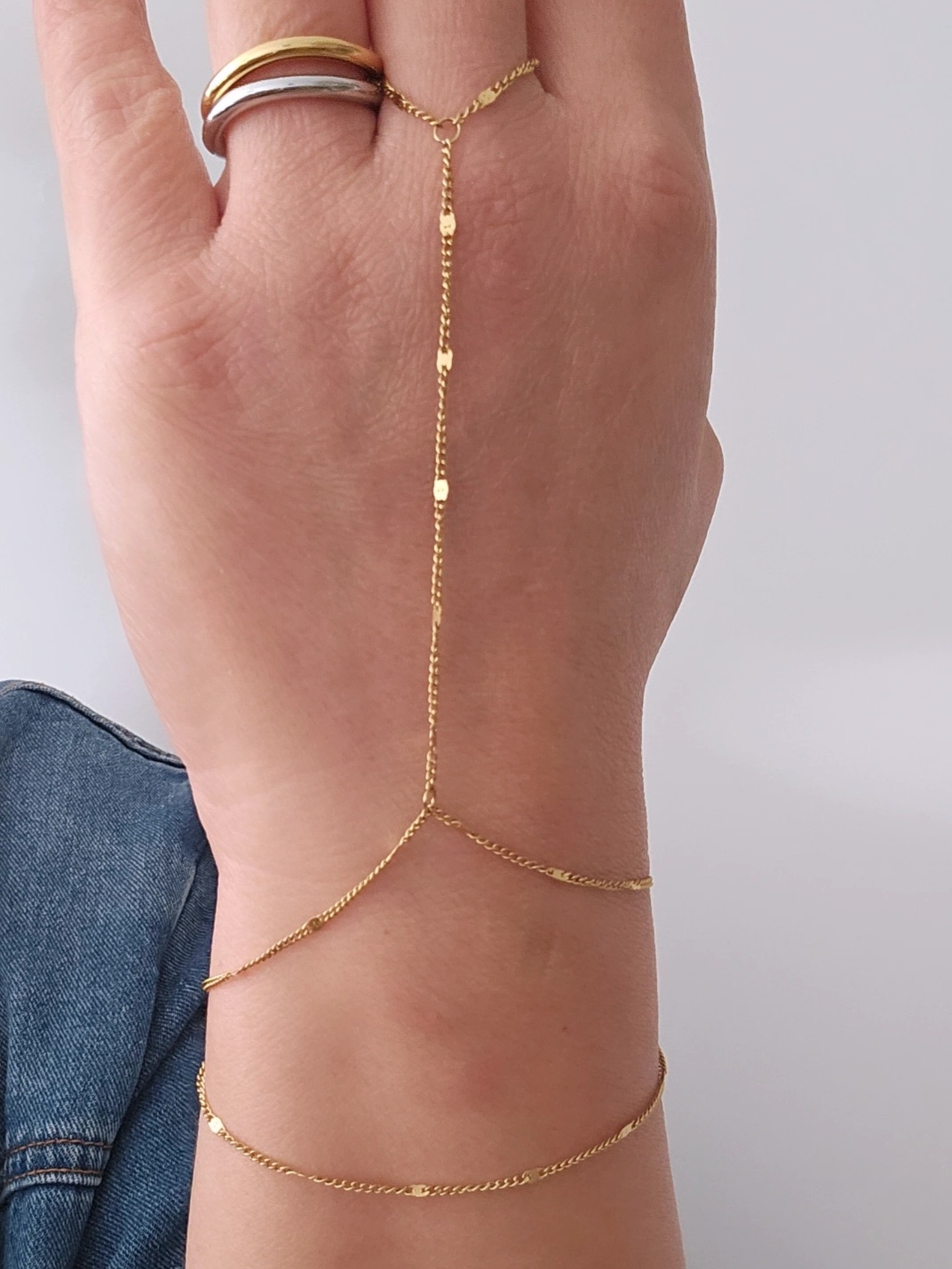 - Ενιαίο κόσμημα που αγκαλιάζει τον καρπό και το δάχτυλο