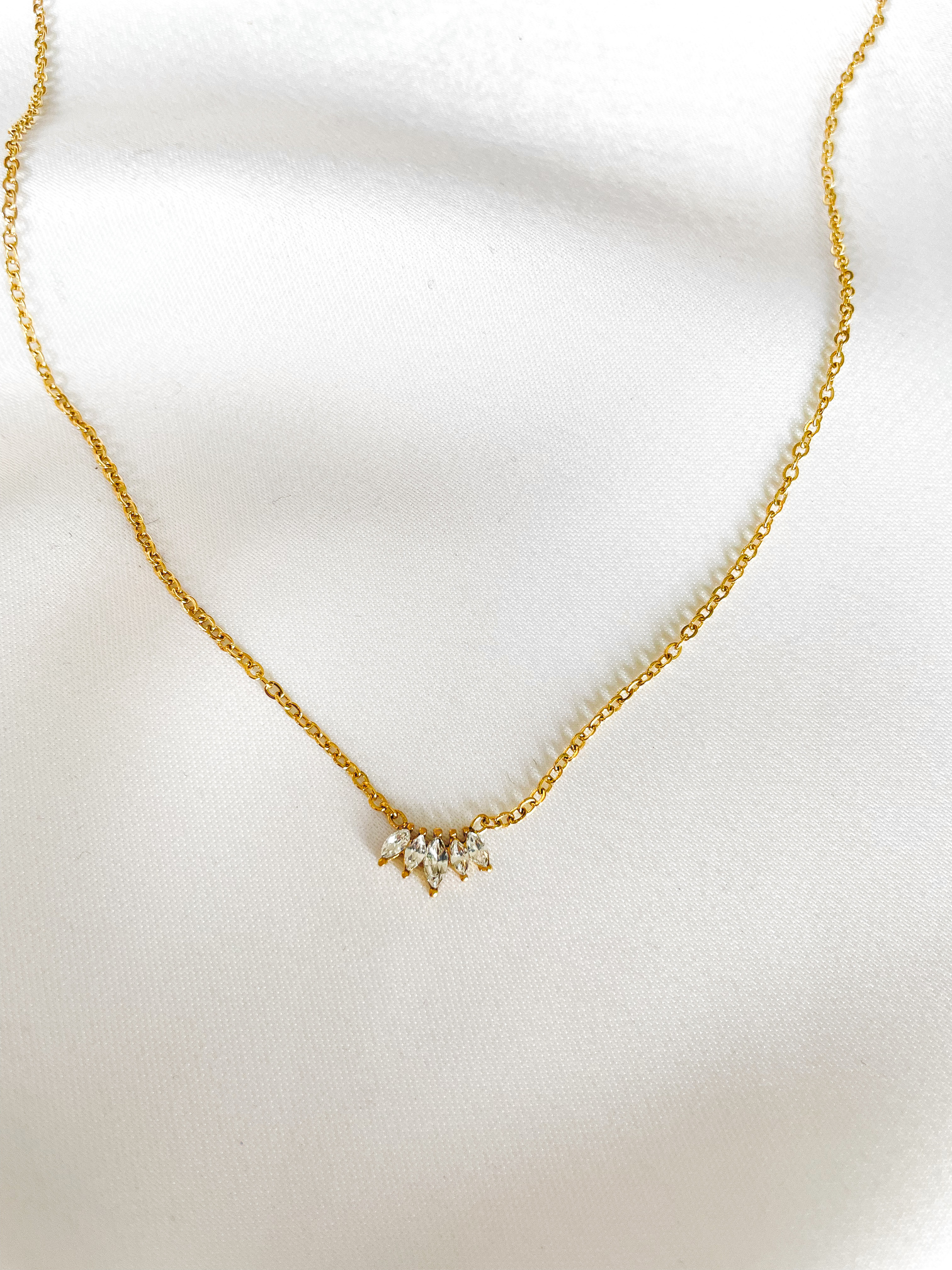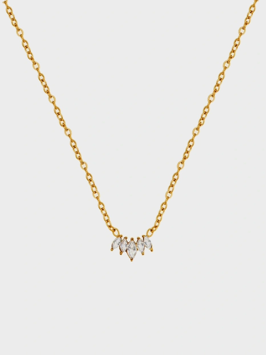 Λεπτό ατσάλινο κολιέ με 5 λευκές πέτρες. Ιδανικό για layering με άλλα κοσμήματα ή για να ολοκληρώσει ένα minimal look.