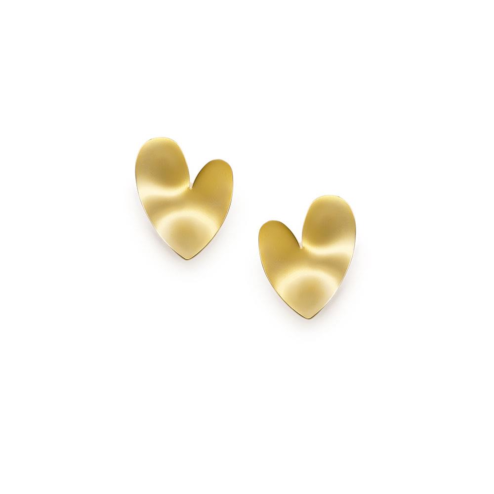 Ατσάλινα σκουλαρίκια καρφωτά σε χρυσό χρώμα και λείο σχέδιο καρδιάς.