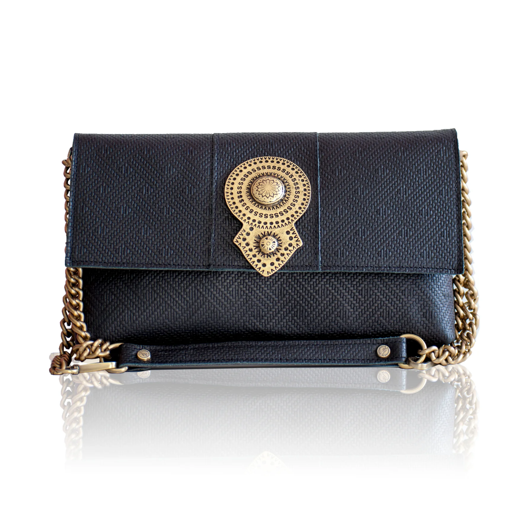 Aurora Leather Shoulder Bag – Black Textured Leather