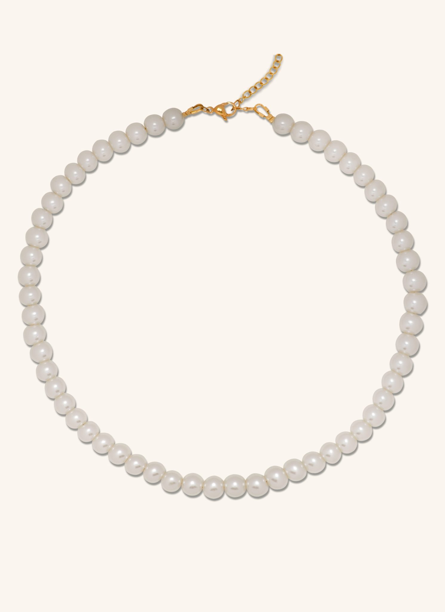 Κομψο κολιε με λευκα τεχνητά μαργαριτάρια που μιμουνται την πολυτελεια των μαργαριταριων.Ιδανικο για minimal αλλα και glam εμφανισεις, προσθετοντας  μια διαχρονικη πινελια φινετσας σε καθε look.