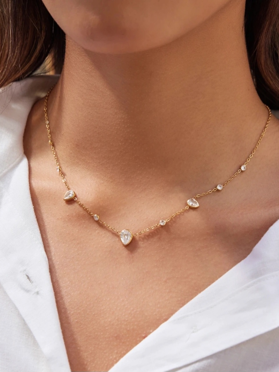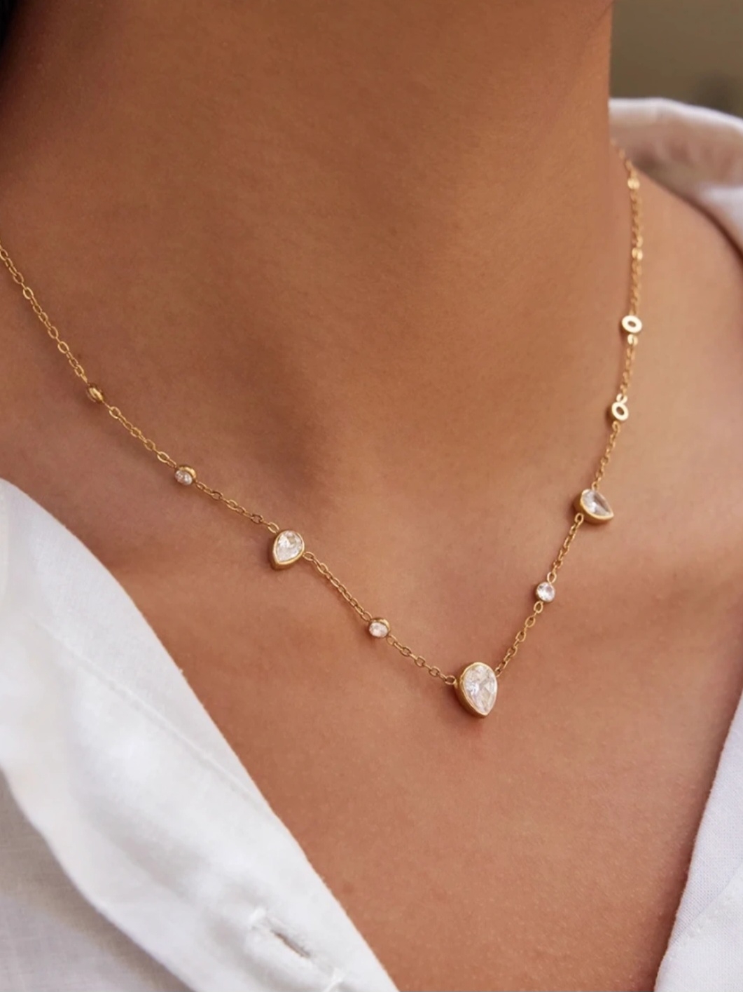 Χρυσό ατσάλινο κολιέ με εκθαμβωτικά ζιργκόν. Μια κομψή και διαχρονική επιλογή για elegant & effortless looks.