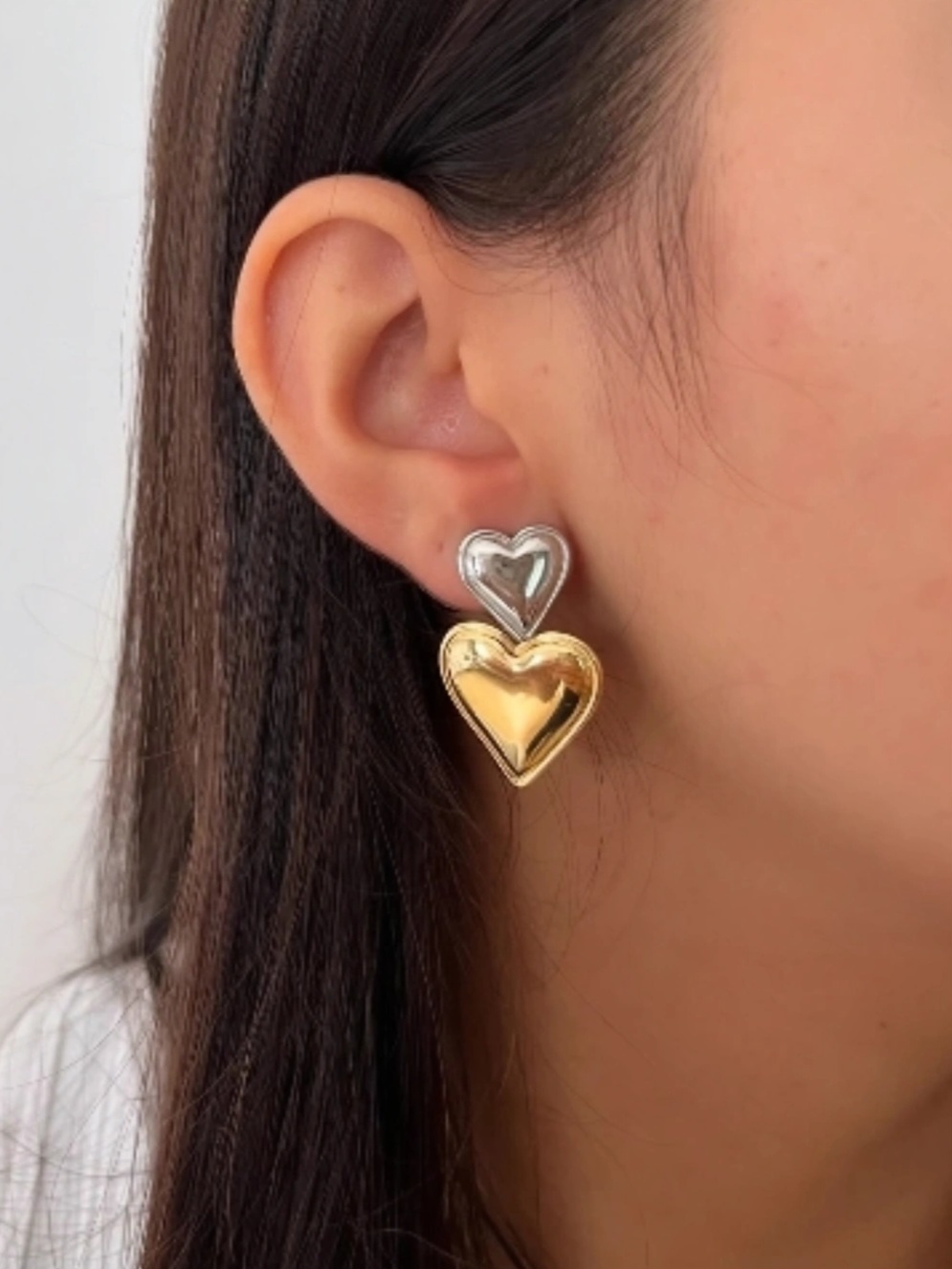Σκουλαρίκια από ατσάλι — διπλή καρδιά για διακριτική λάμψη που αναδεικνύει κάθε σου look, από το πρωί ως το βράδυ.