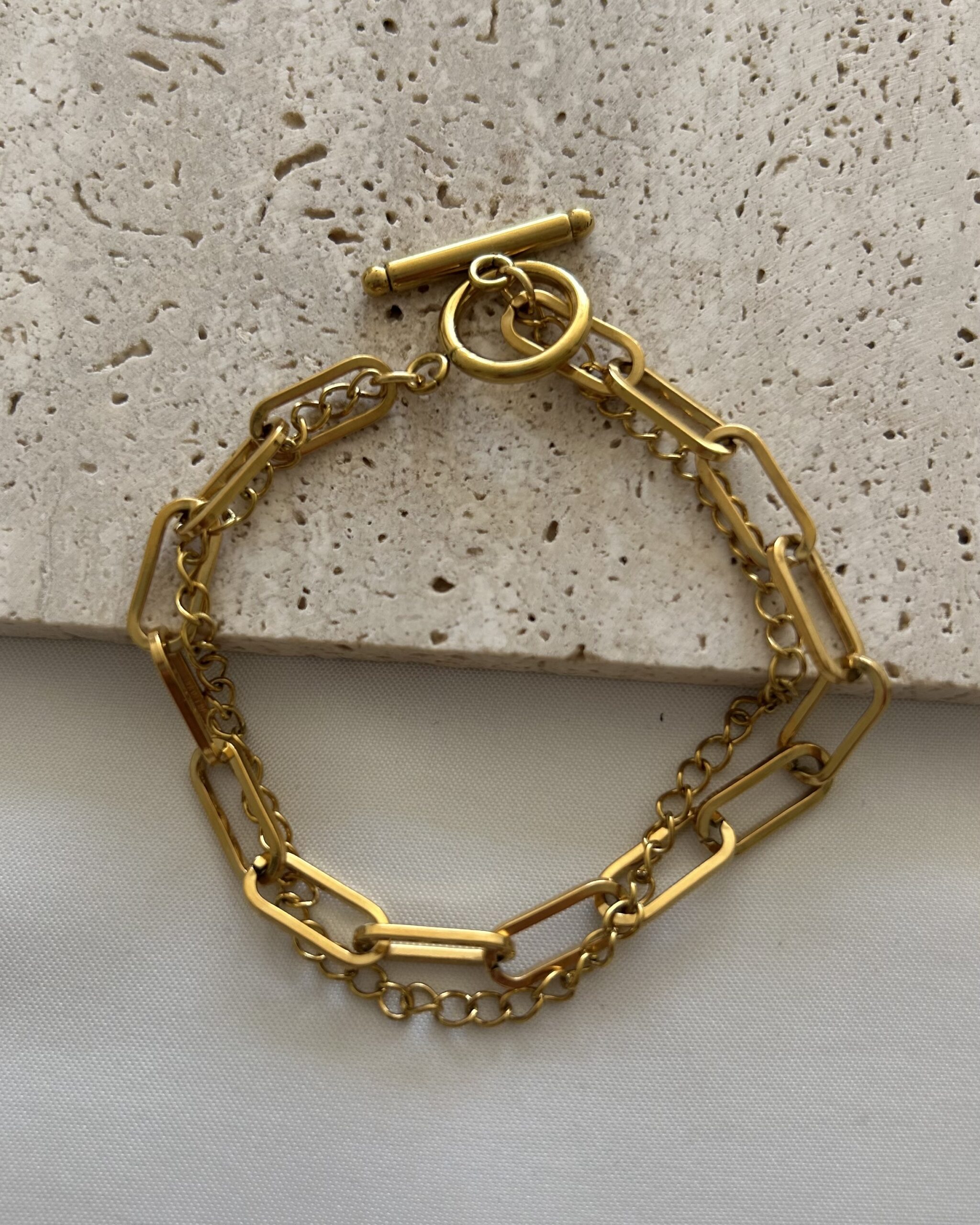 Διπλη χρυση αλυσιδα με κομψο T-bar κουμπωμα, για minimal αλλα και statement εμφανισεις.Ιδανικο για καθε μερα η layering looks.