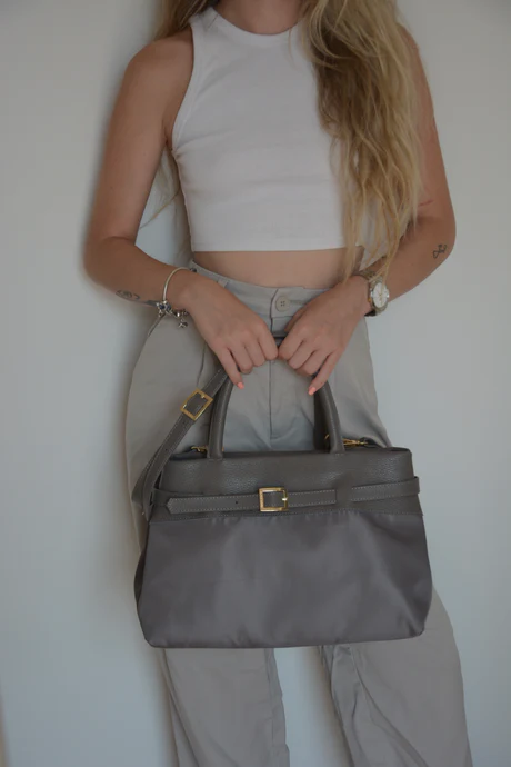 Emily Large  Leather Bag boasts a sophisticated and classy design that embodies timeless femininity. Crafted from premium leather and  soft water proof canvas, this elegant and spacious bag features two sturdy top handles, making it the perfect accessory for everyday use with a touch of refined style.