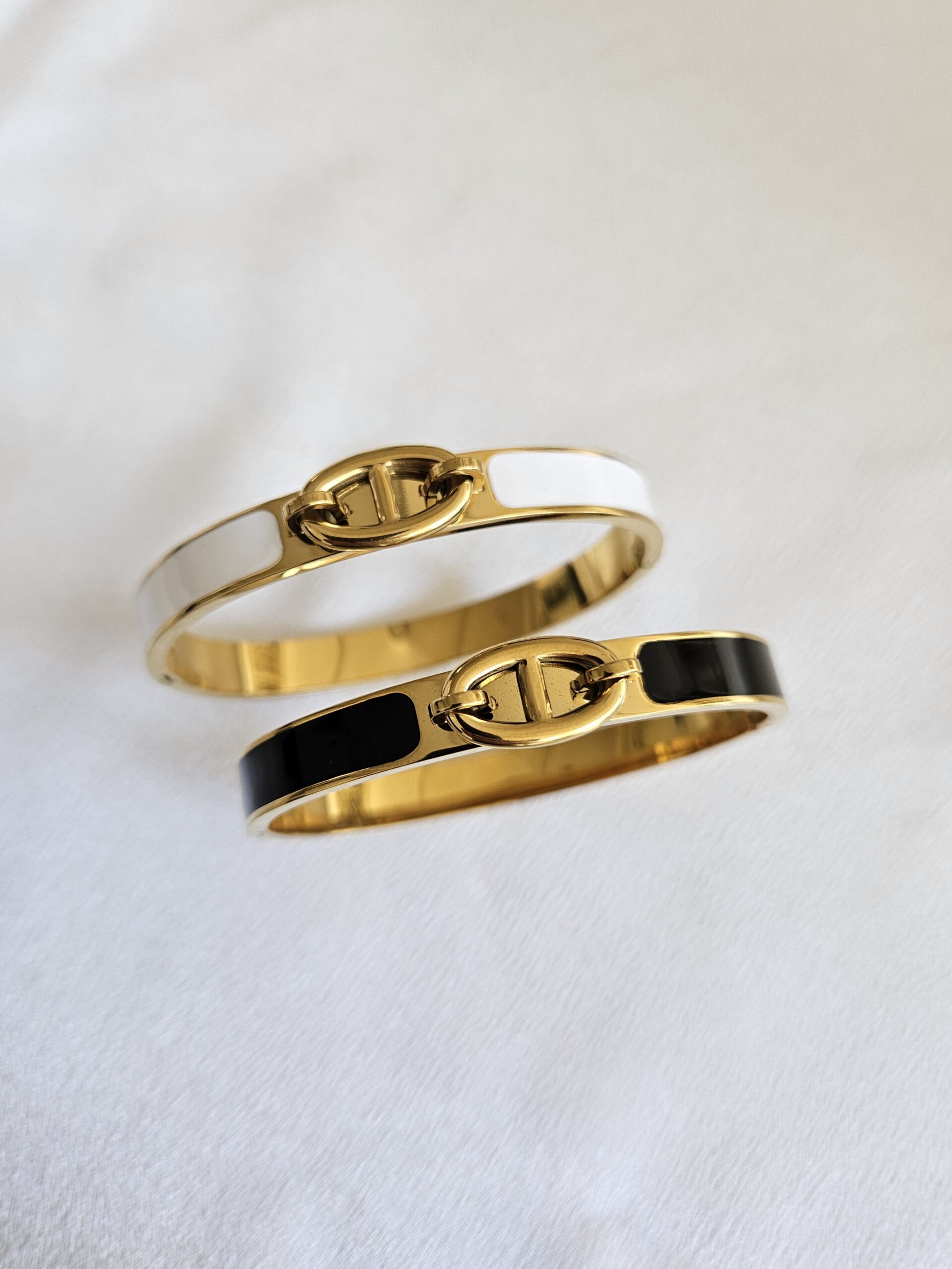 Ατσαλινο βραχιολι χειροπεδα με enamel λεπτομερειες αποτελει statement piece που αναδεικνυει καθε εμφανιση.Ενα διαχρονικο κοσμημα που προσθετει κομψοτητα σε καθε σας εμφανιση.