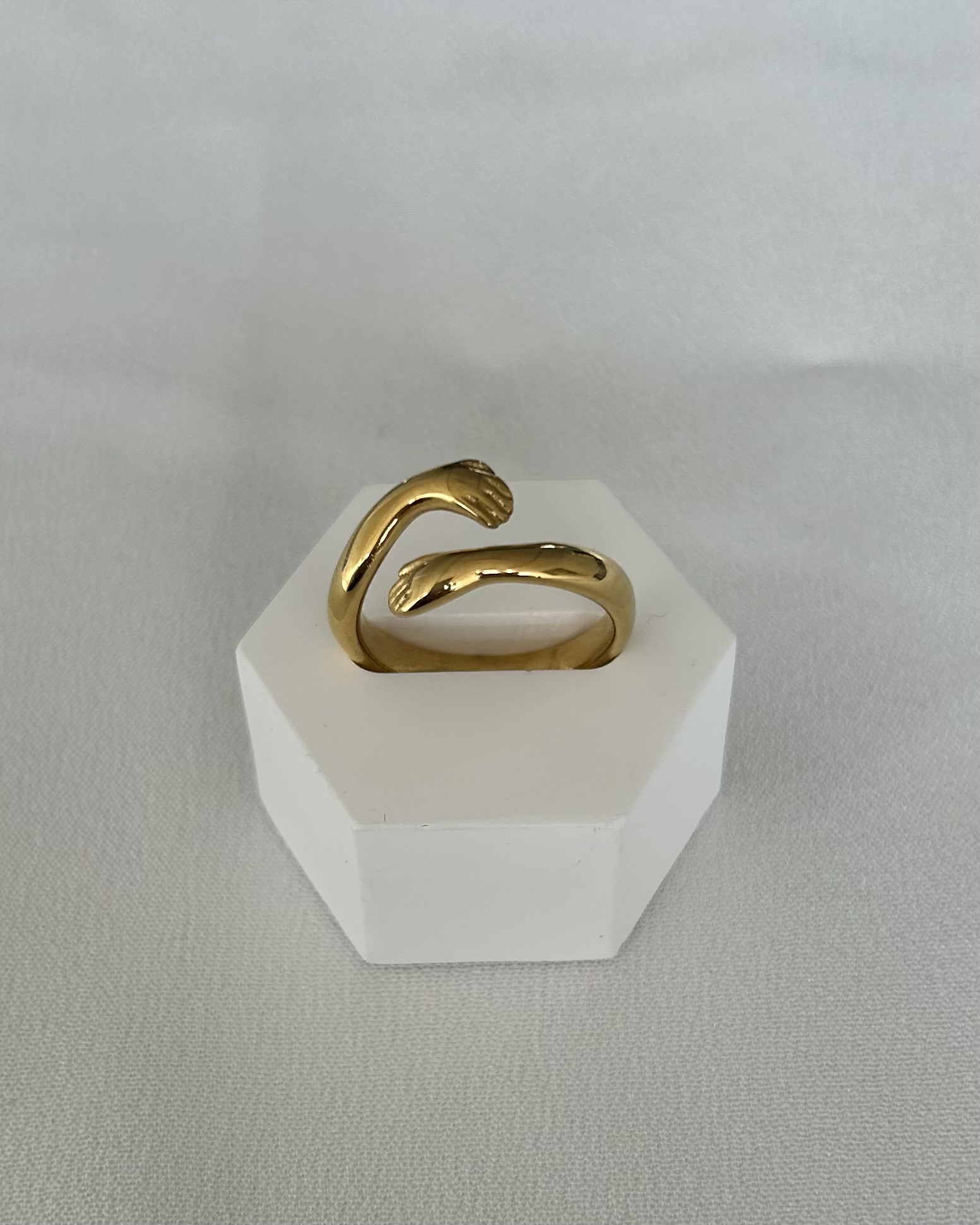 ατσάλινο δαχτυλίδι, χρυσό δαχτυλίδι, Love Hug Ring, open ring, gold ring