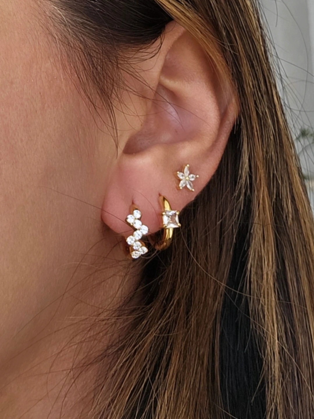 Κρίκοι σε χρυσό τόνο με λευκή πέτρα Διακριτική λάμψη, κλασική κομψότητα – ιδανικοί για καθημερινό styling ή layering με τα αγαπημένα σου κοσμήματα.