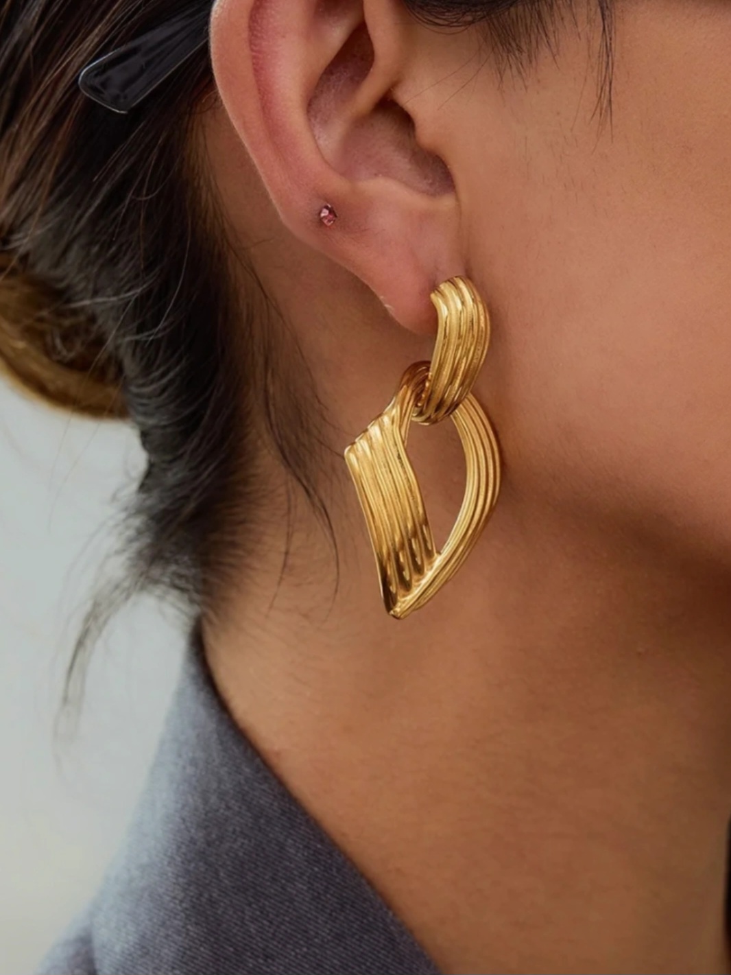 Κυματιστά χρυσά hoops με σύγχρονο, γεωμετρικό design. Minimal και πολυτελή, ιδανικά για καθημερινό αλλά και βραδινό styling.