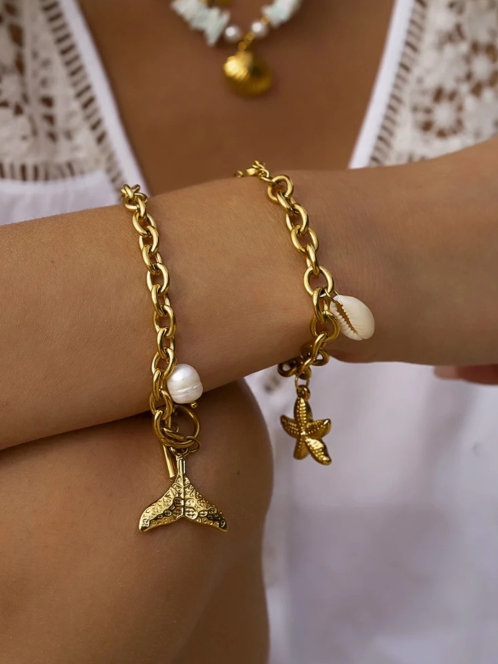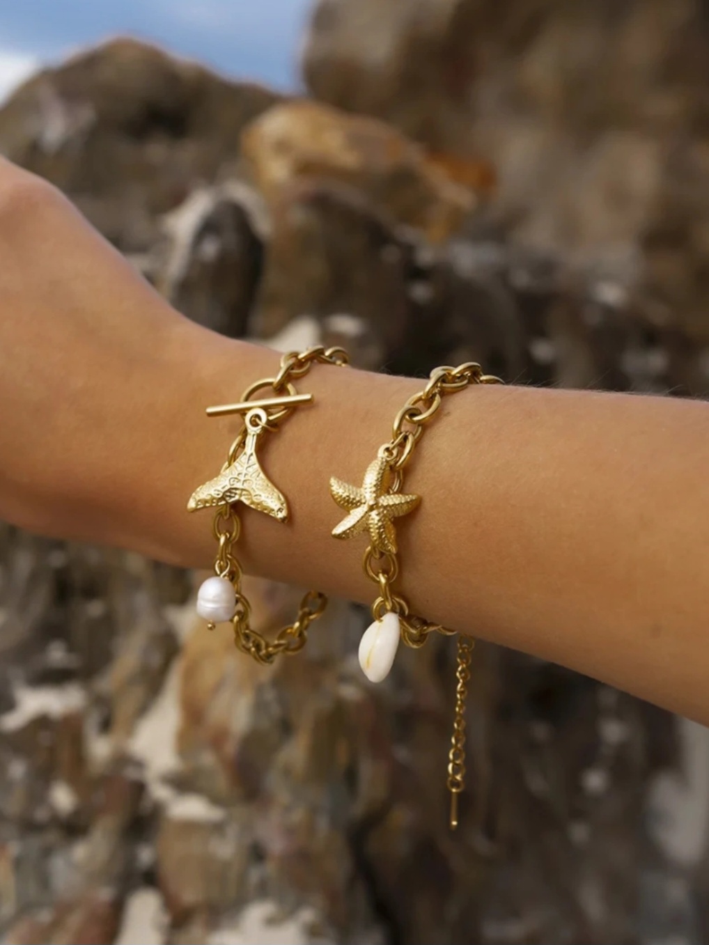 Βραχιολι με χρυσή αλυσίδα και charms επνευσμενα απο τη θάλασσα. Ιδανικο για beach-to-dinner εμφανίσεις.