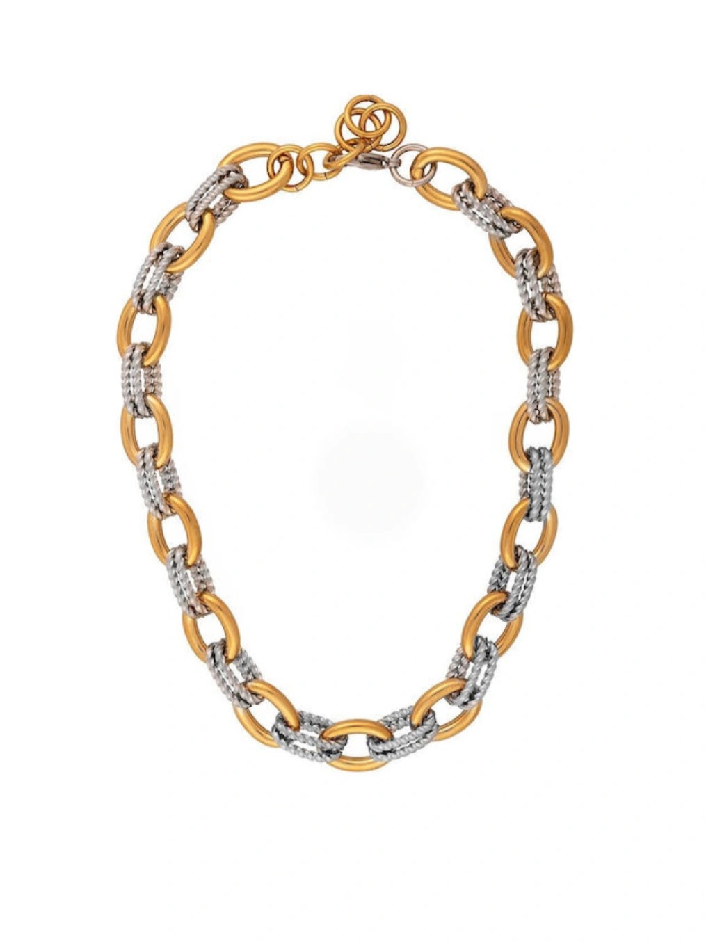 Chunky κολιέ από ανοξείδωτο ατσάλι που ξεχωρίζει για τον εντυπωσιακό και κομψό του σχεδιασμό.Ιδανικό για να απογειώσει κάθε εμφάνιση, από πρωινό έως βραδινό look.