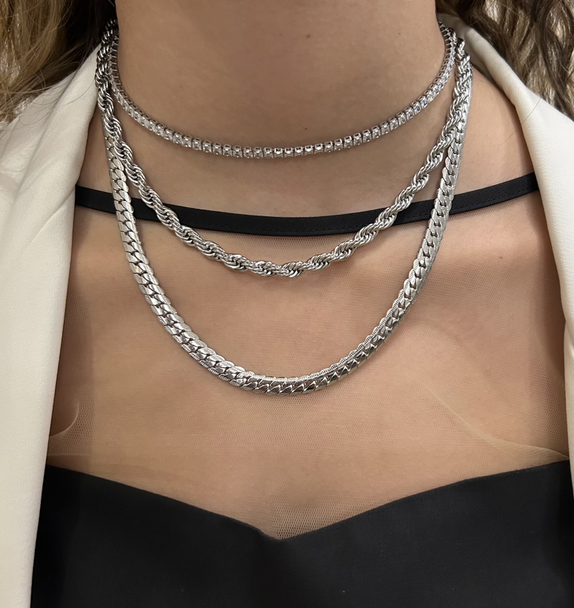 Ένα εντυπωσιακό αλλά ευκολοφόρετο κολιέ. Συνδυάζεται τέλεια με crop tops, lingerie-style μπλούζες ή ακόμα και σακάκια, για ένα look που συνδυάζει casual και bold στοιχεία.