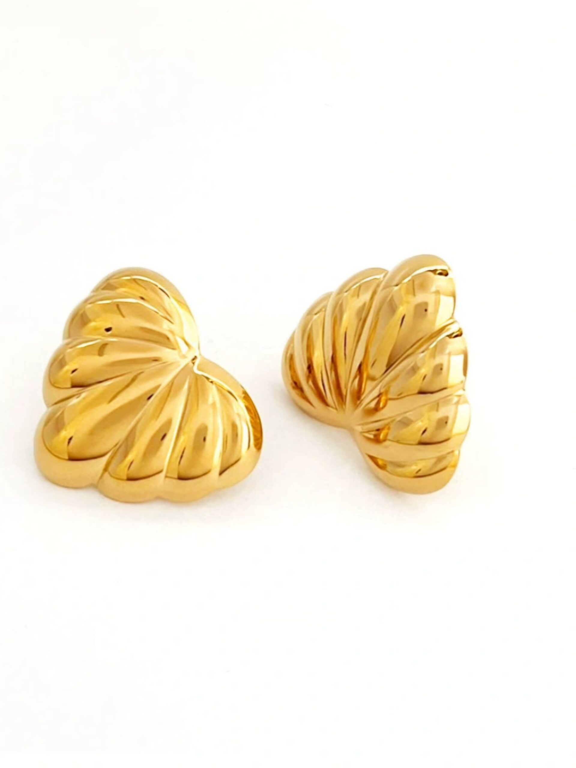Χρυσά σκουλαρίκια σε σχήμα φύλλου με ασύμμετρη, τρισδιάστατη μορφή – ένα statement κόσμημα που προσθέτει κομψότητα και δυναμισμό σε κάθε εμφάνιση. Ιδανικά για μίνιμαλ ή επίσημα σύνολα, χαρίζοντας μια ξεχωριστή και εκλεπτυσμένη παρουσία.