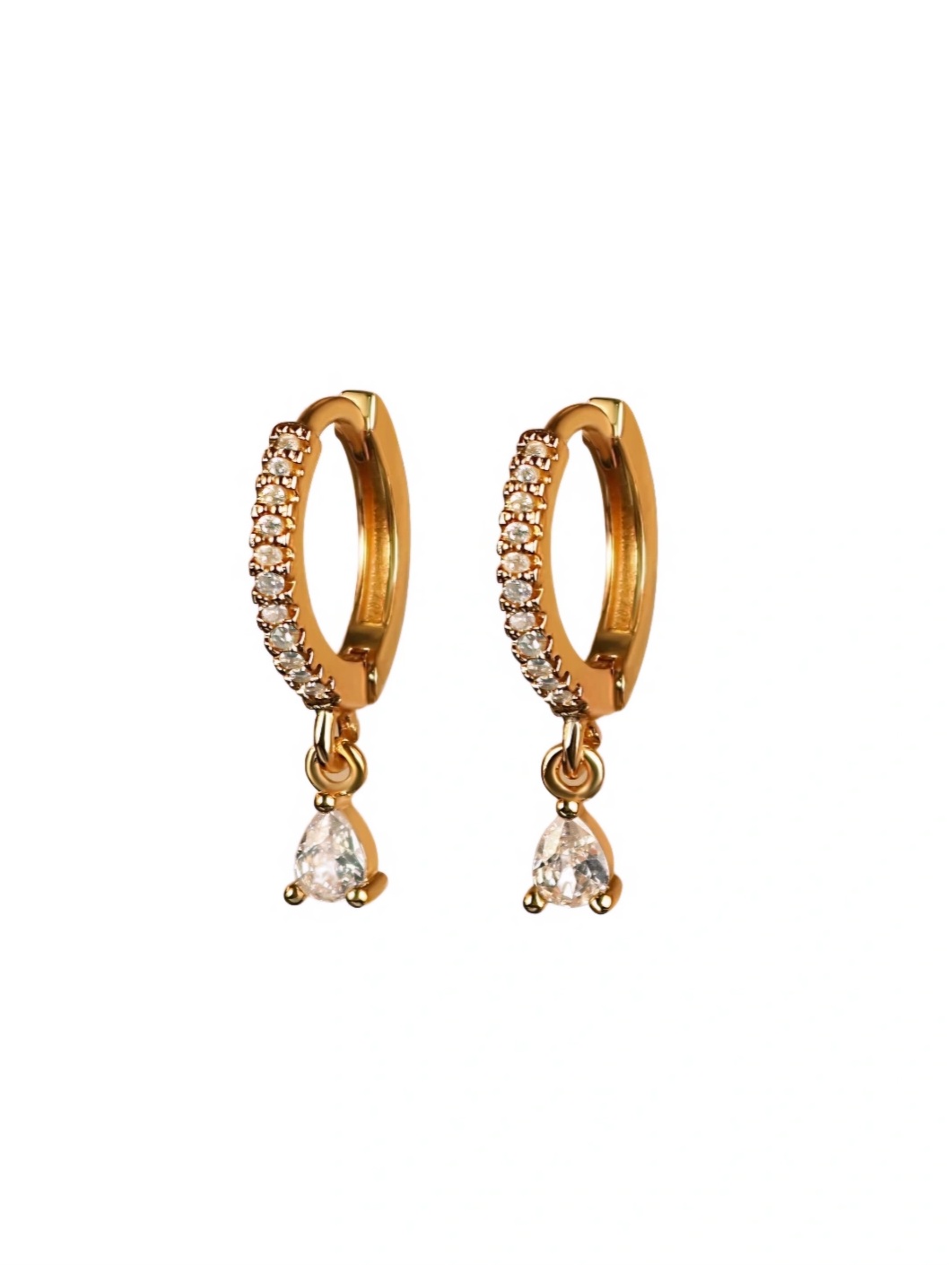 Λαμπερά και κομψά, αυτά τα χρυσά σκουλαρίκια διαθέτουν λεπτή γραμμή ζιργκόν προσθέτοντας μια καθαρή, φωτεινή πινελιά στο look σας. Ιδανικά για καθημερινή χρήση ή για layering με μικρά studs.