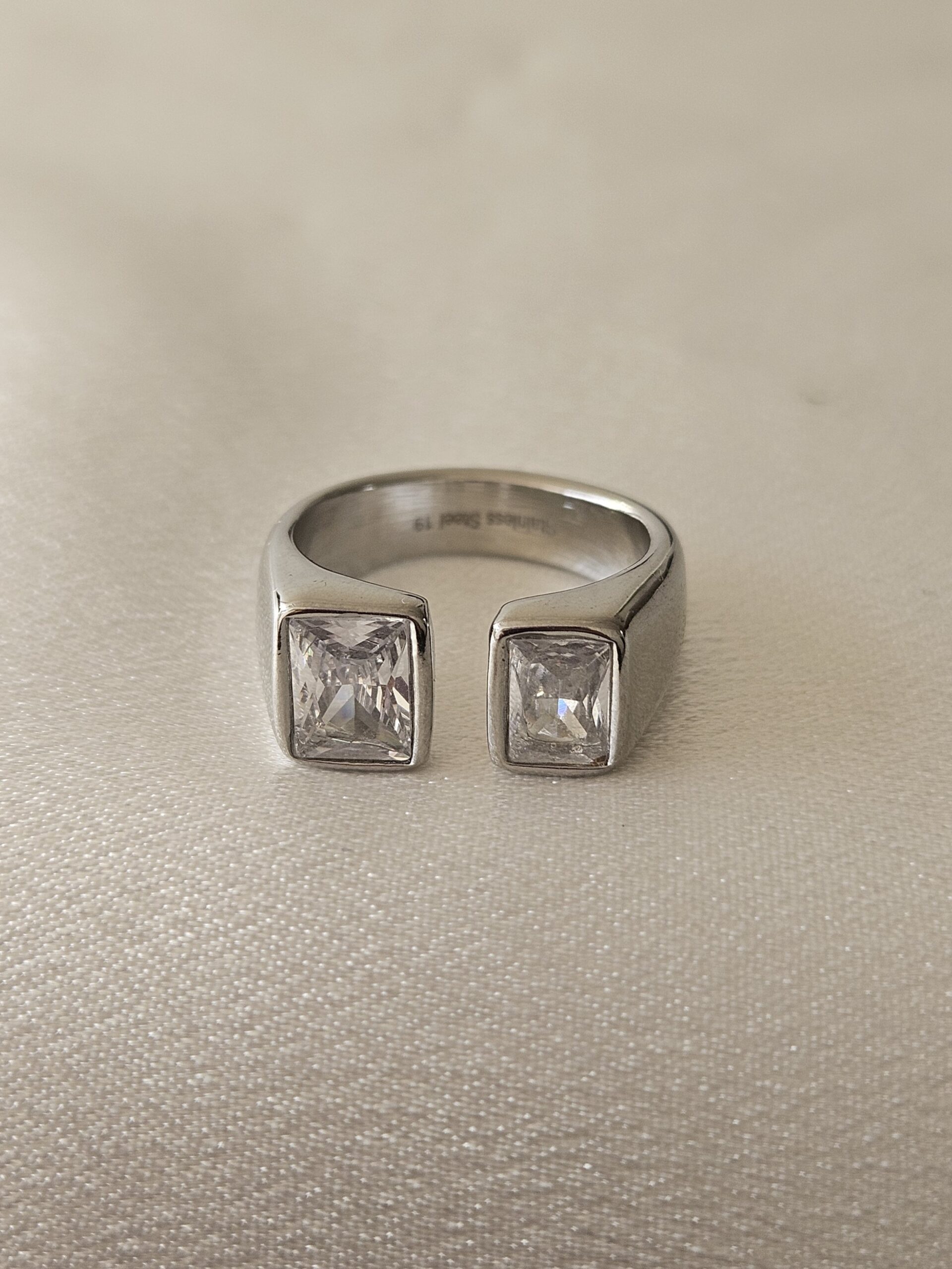 Αυτό το εντυπωσιακό δαχτυλίδι διαθέτει δύο κρυστάλλους, προσθέτοντας μια πινελιά εκλεπτυσμένης κομψότητας. Η λαμπερή του λάμψη και ο μοναδικός του σχεδιασμός το καθιστούν ιδανικό για ξεχωριστές στιγμές.